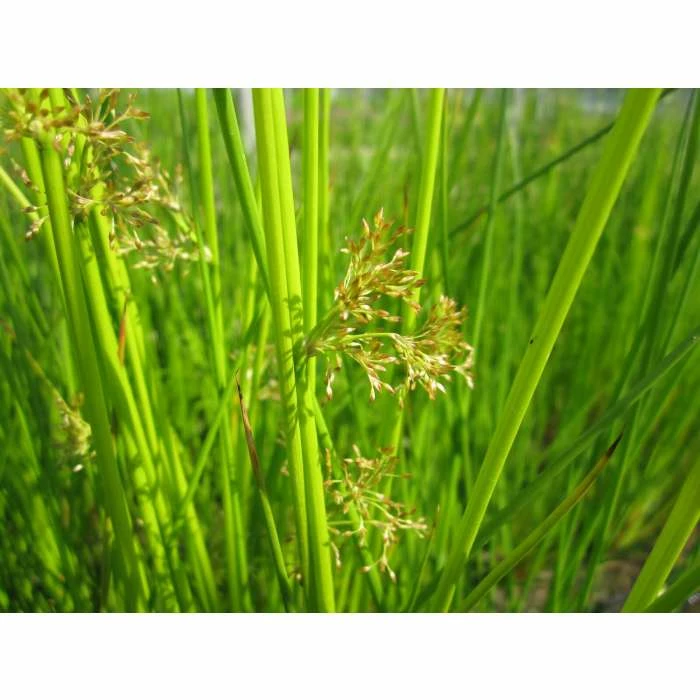 Juncus Effusus is a tall emergent perennial plant, native to Britain, which helps to maintain optimal pond water conditions and naturally streamline filtration processes. It also has highly decorative properties which make it a versatile plant, suitable for beautifying pond margins and water-flows. It will provide a good habitat for wildlife as well. It features dense clumps of deep green upright stems and clusters of tiny tufted brown flowers positioned irregularly on the sides of the stems. Juncus Effusus is an evergreen plant, which means that the foliage of the plant persists and remains green throughout the year.